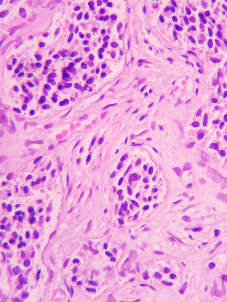 За результатами патогістологічного дослідження після 12-точкової біопсії встановлено діагноз: аденокарцинома передміхурової залози, 6 балів за Глісоном (3+3), G1, із ураженням приблизно 25% тканини у трьох біоптатах.