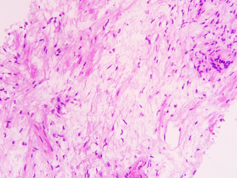 Повторна біопсія підтвердила наявність чітко окресленої ділянки склерозу в зоні проведеного лікування без ознак злоякісного процесу.