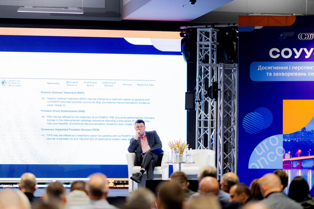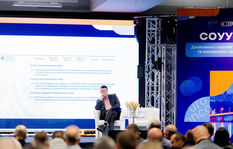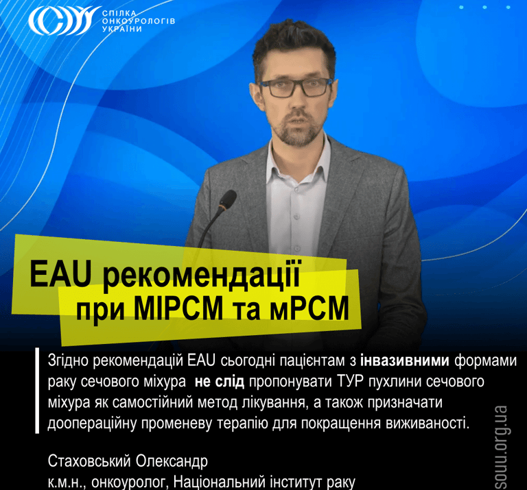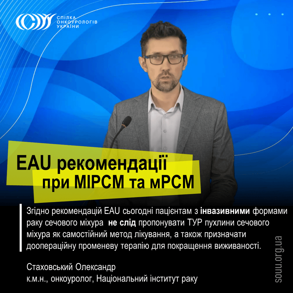 "Згідно рекомендацій Європейської асоціації урологів з м'язово-інвазивного та метастатичного раку сечового міхура не слід пропонувати трансуретральну резекцію пухлини сечового міхура як самостійний метод лікування, оскільки це не принесе користі для більшості пацієнтів. А також не слід призначати доопераційну променеву терапію для покращення виживаності" - Стаховський Олександр, д.мед.н., онкоуролог у своїй доповіді «Радикальна та паліативна цистектомія в контексті клінічних рекомендацій діагностики та лікування раку сечового міхура».