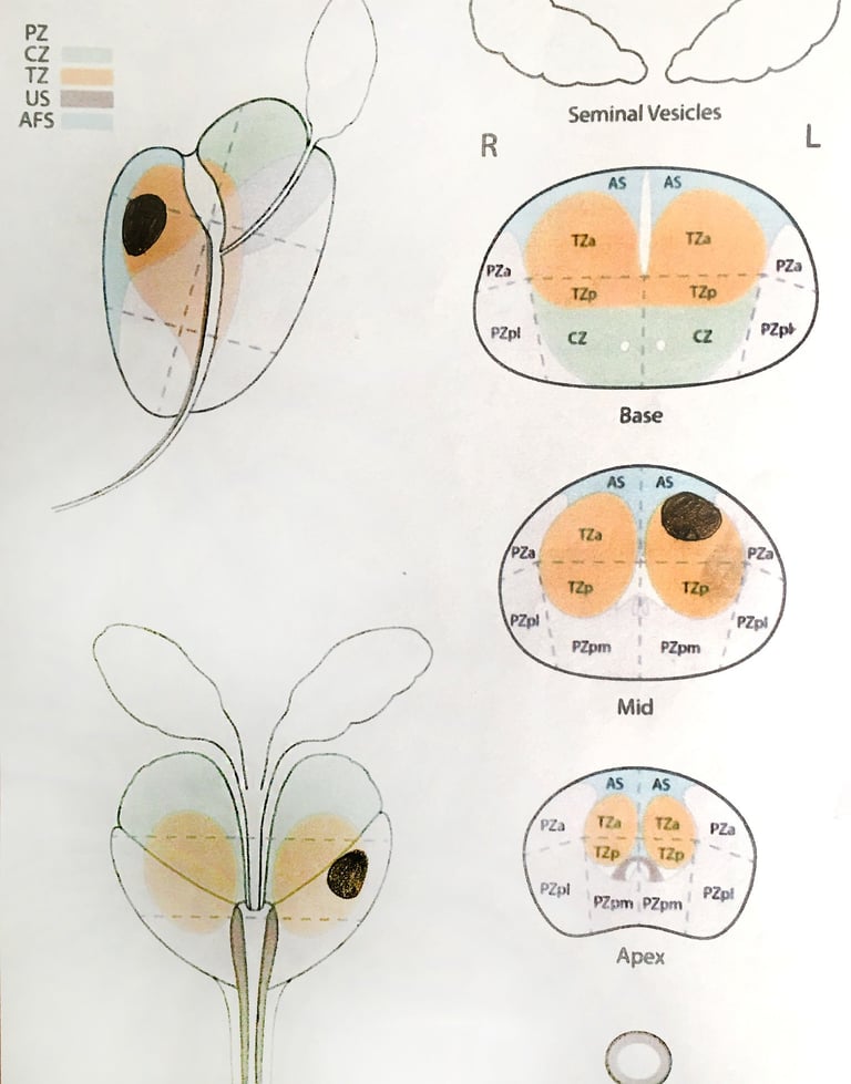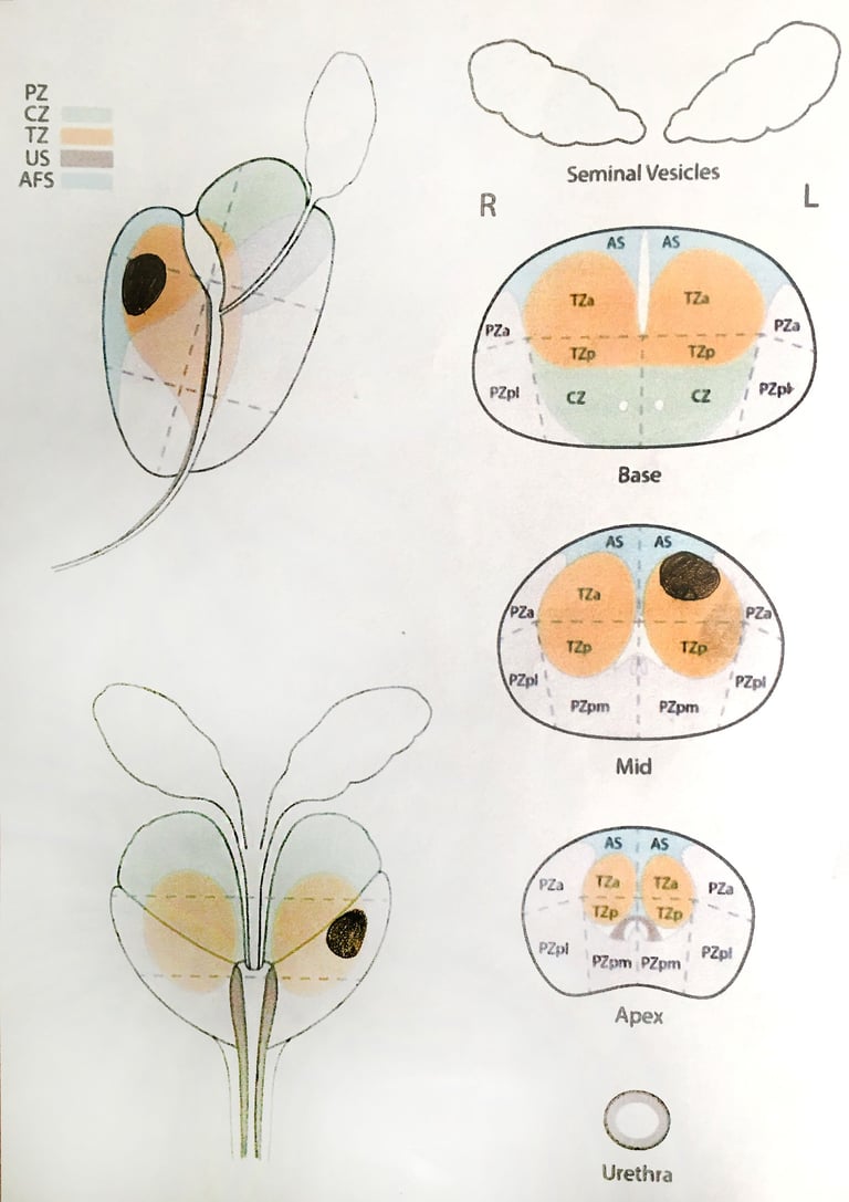 За допомогою МРТ дослідження розрізняють 36 зон в передміхуровій залозі, і саме ці зони важливі для лікаря-хірурга для вирішення подальшої тактики лікування.